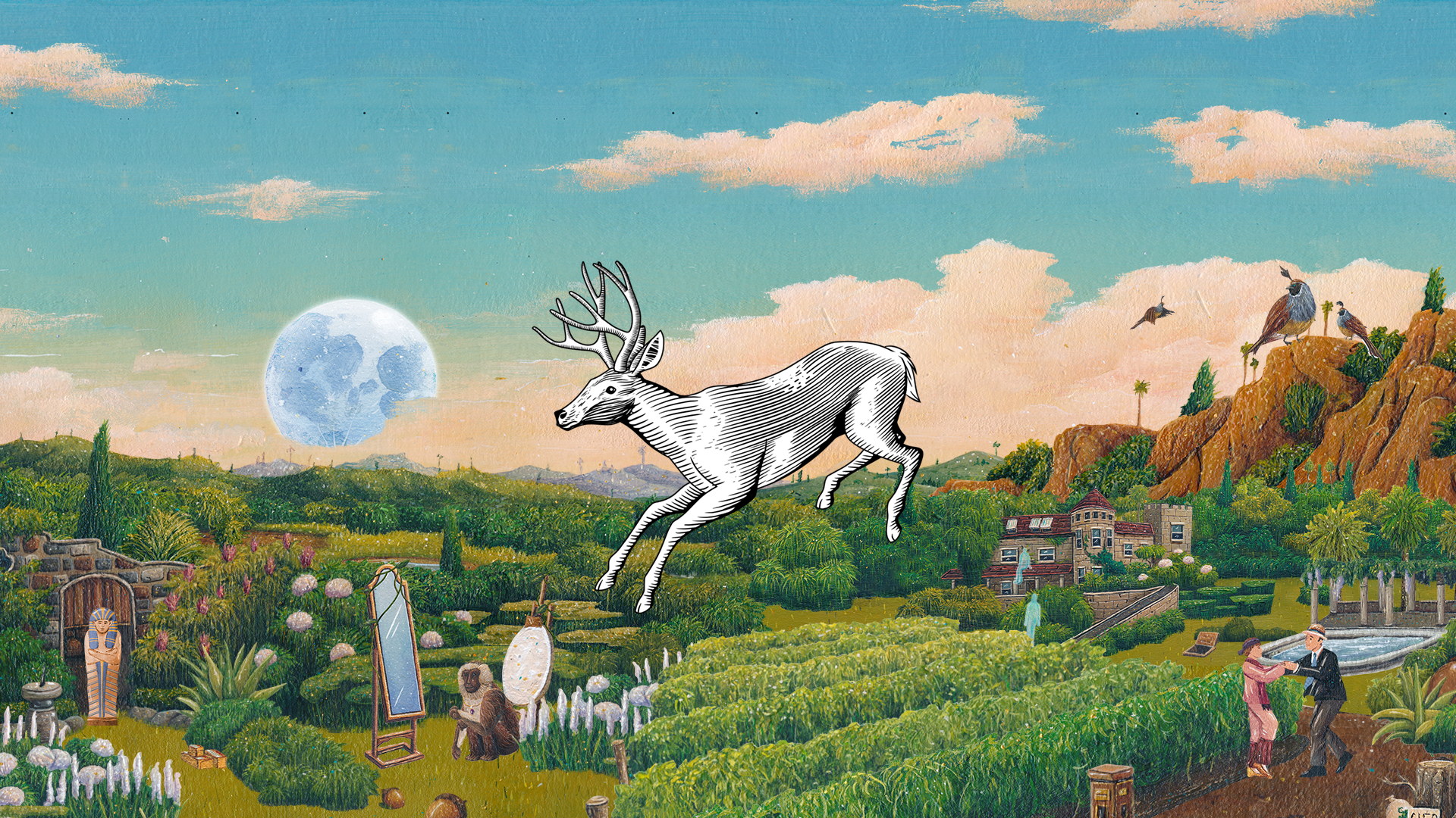Inspired by old paintings and Victorian oddities, this world captures the beauty of Napa Valley—its rolling hills and endless vineyards—honoring Stags’ Leap’s heritage while infusing it with a wondrous, dreamlike quality. Emerging from the wine label’s horizon, the environment expands into the z-axis, breaking boundaries and giving our Stag a new dimension to leap through—exploring a realm we’ve never seen before.
